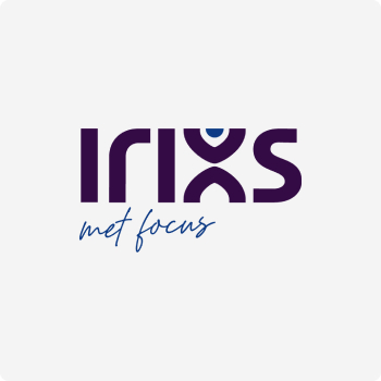 Het Irixs logo passen we in de basis toe op een witte achtergrond. Het is ook mogelijk om het logo toe te passen op een paarse achtergrond, in dat geval kan gebruik gemaakt worden van het witte logo. We passen het logo in principe niet toe op andere kleuren.